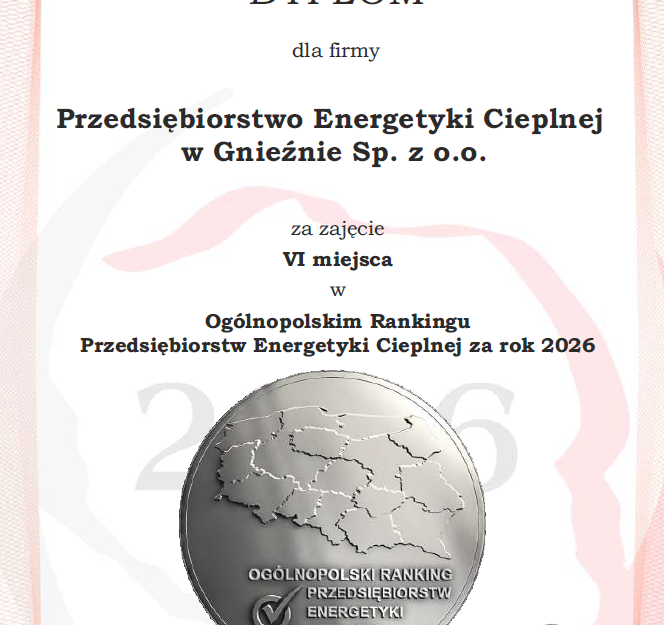 PEC zajął 6. miejsce w Ogólnopolskim Rankingu Przedsiębiorstw Ciepłowniczych przygotowanym przez Strefę Gospodarki Dziennika Gazeta Prawna.